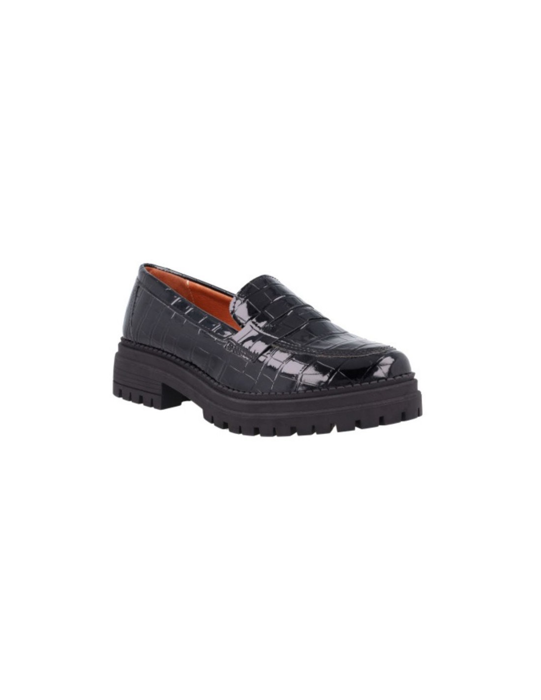 Black leather women's mocassins. Ref: W-CROSO-BLACK