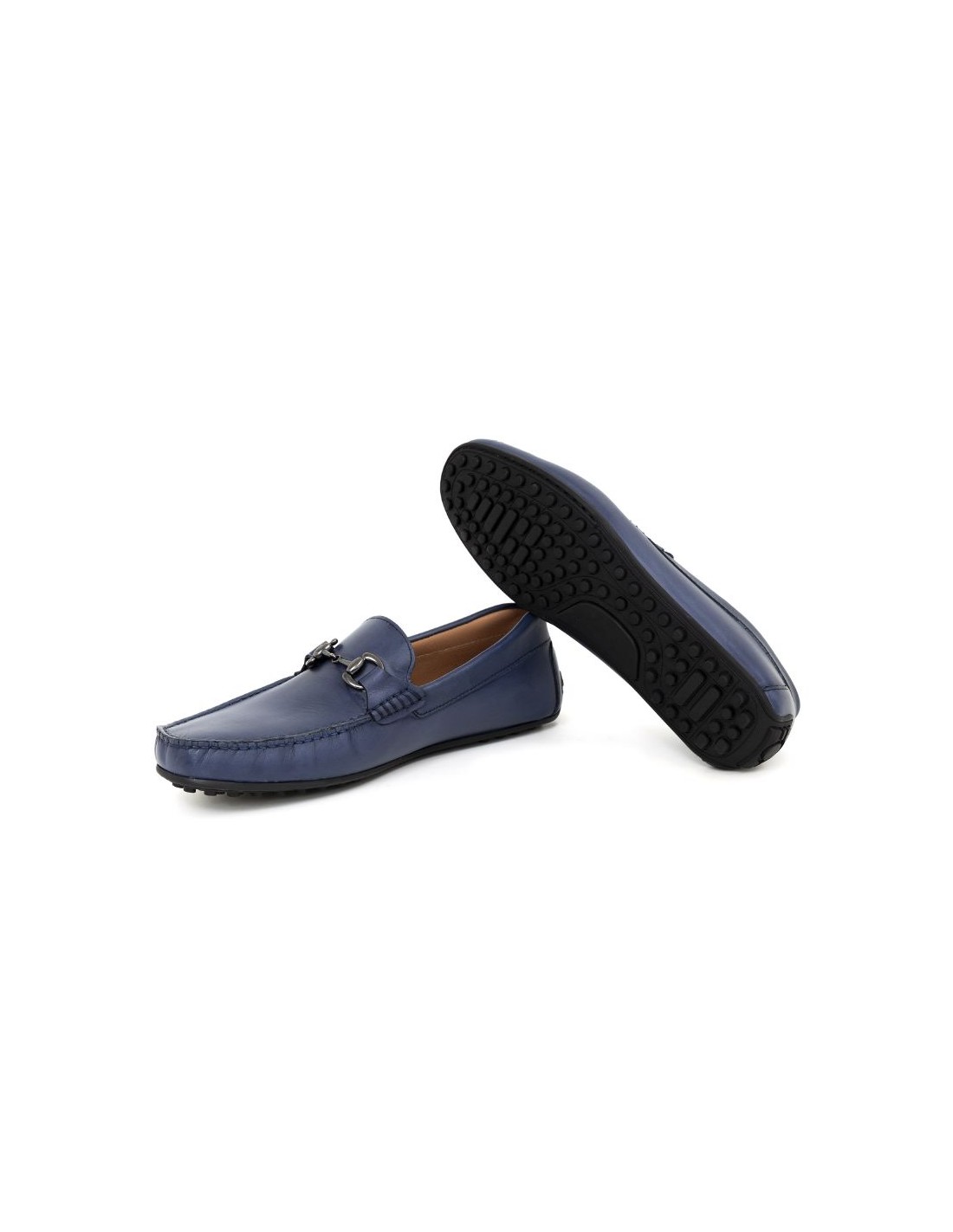 Blue leather moccasin. Ref: MOCBUCKLE-MARINO