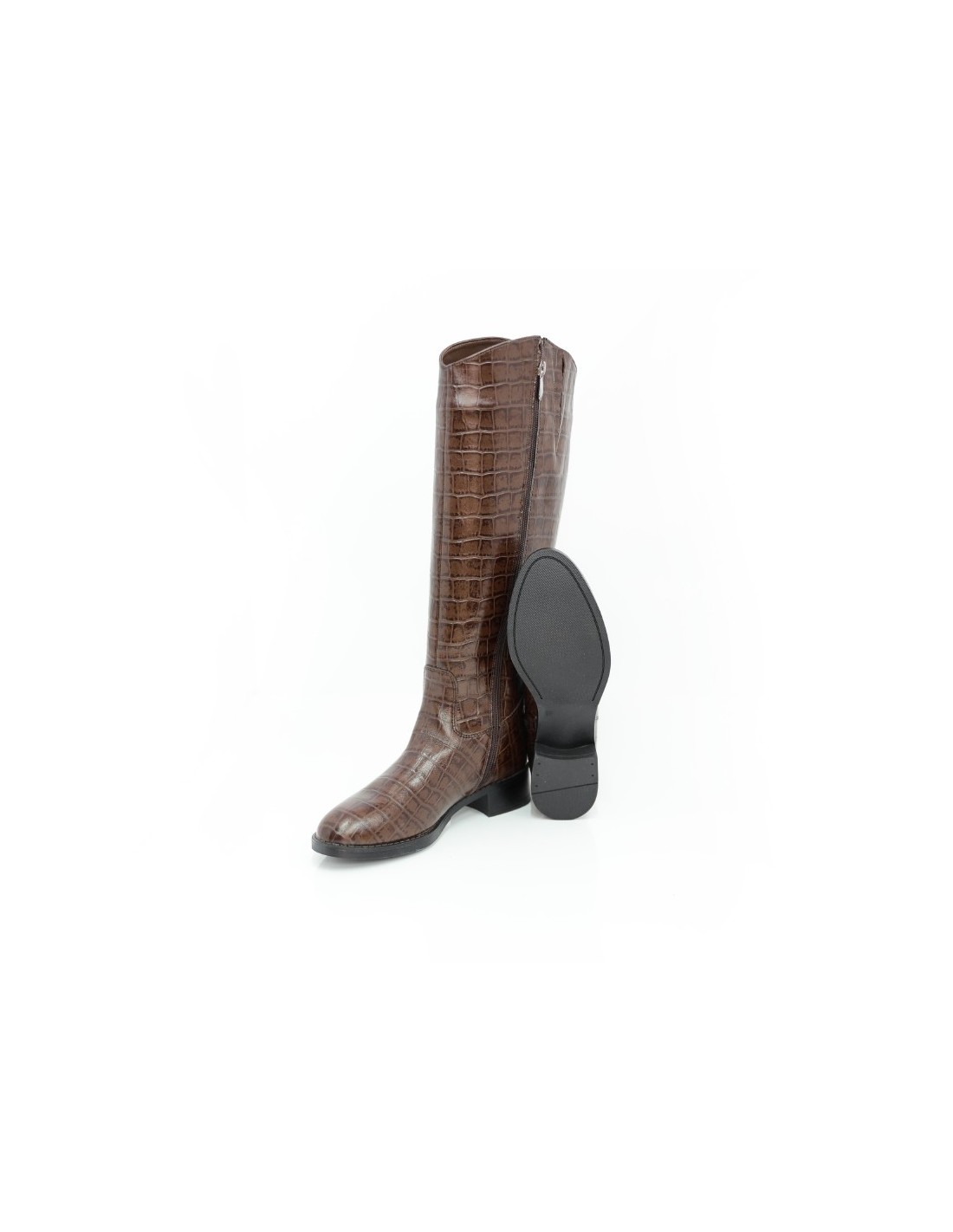 Botas de mujer de piel con piel de coco color marrón. Ref: W-CROBO-MARRON