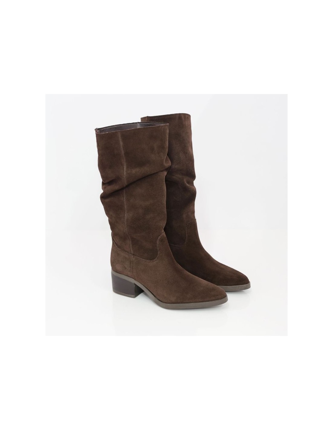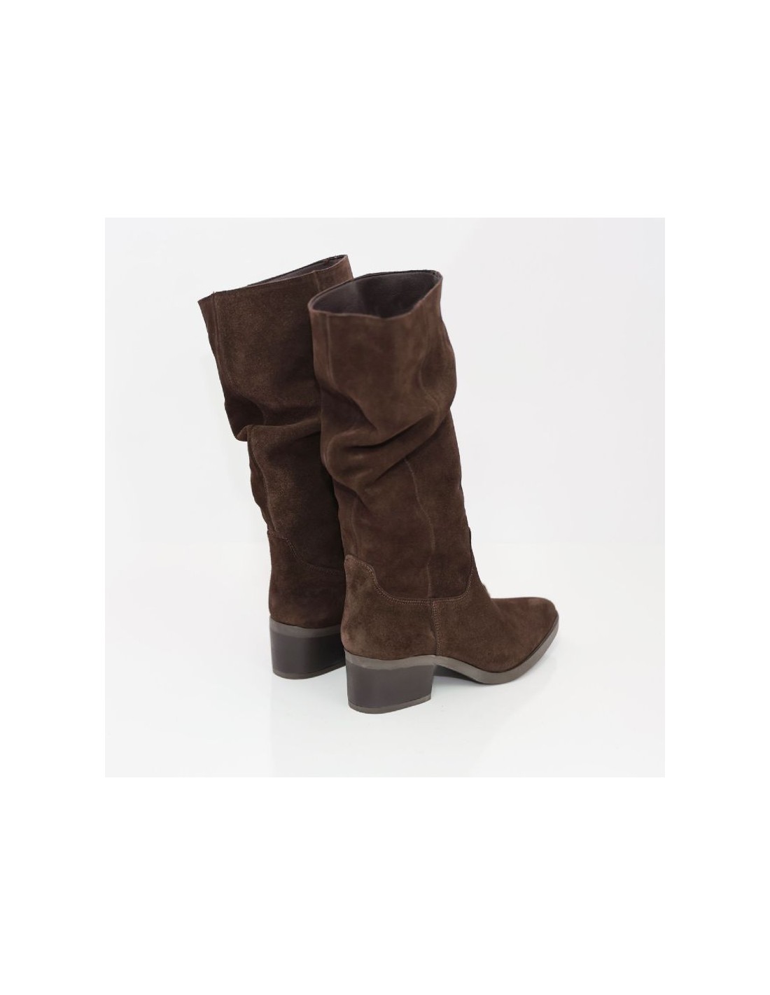 Botas de mujer de ante con cremallera color marrón. Ref: W-CASY-BROWN