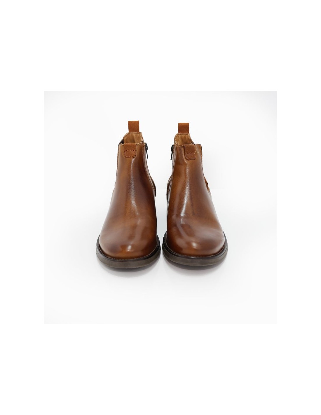 Botines Chelsea de piel acabado a mano color cuero. Ref: MOFOR-CUERO