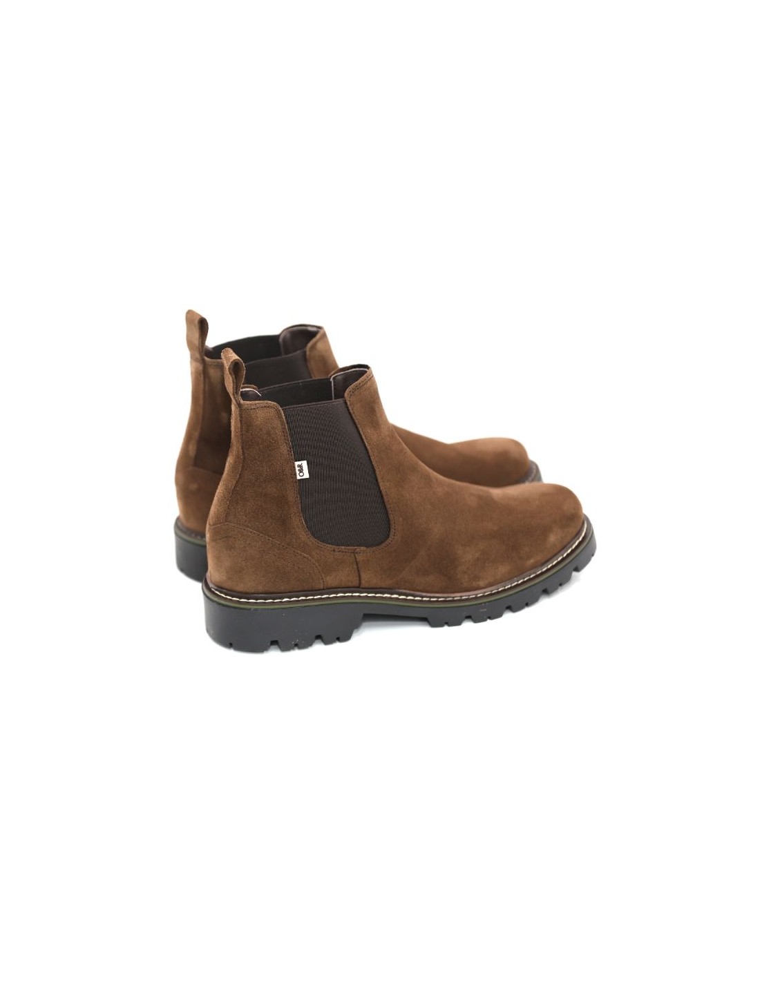 Botines Chelsea de ante con elástico lateral color marrón. Ref: SONIP-BROWN