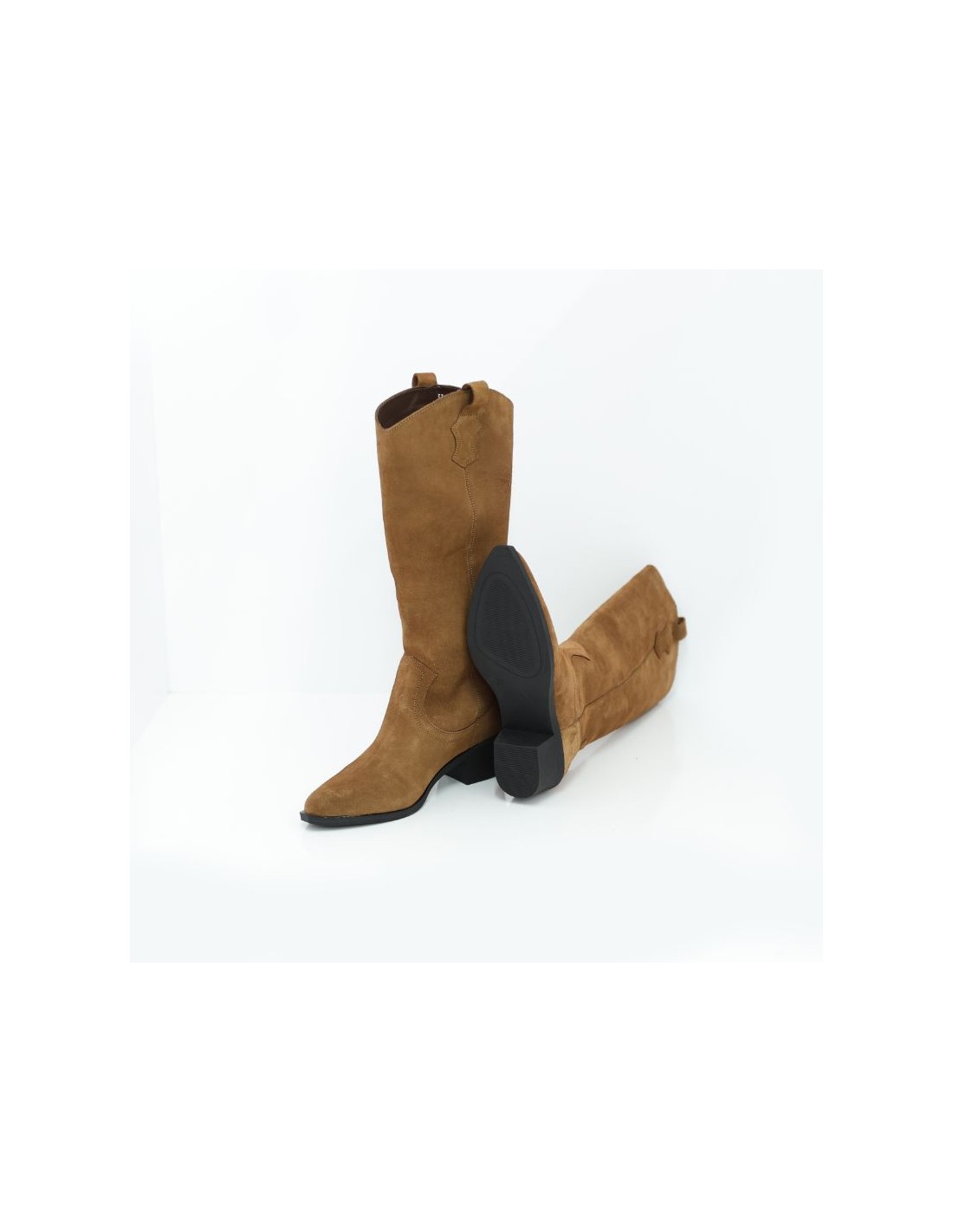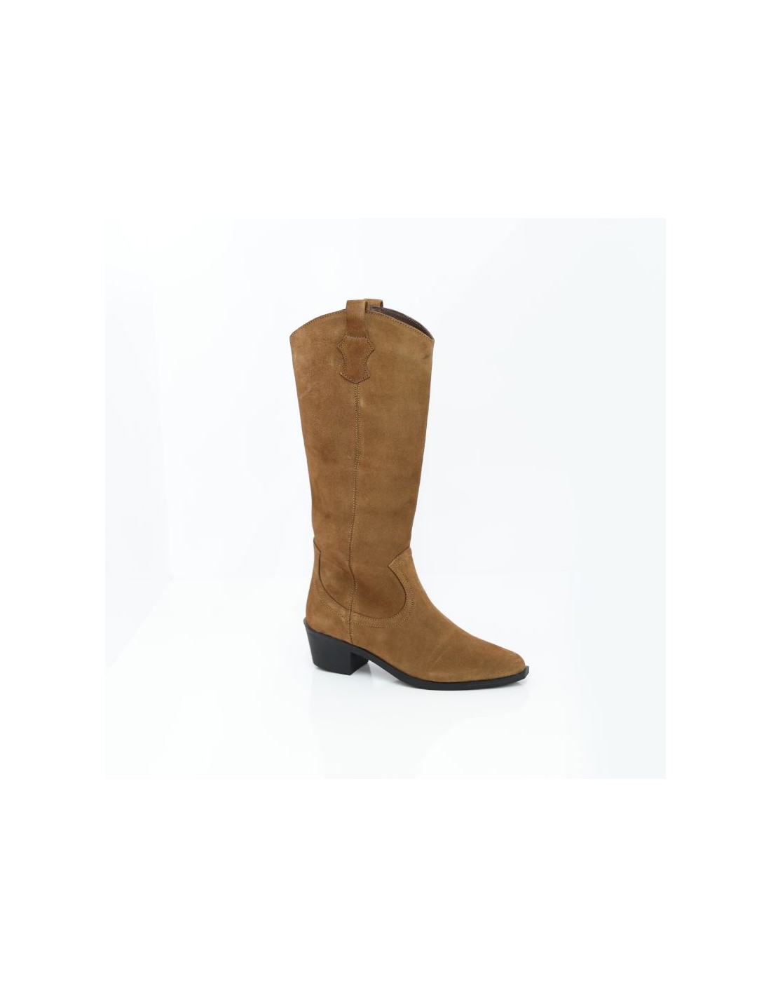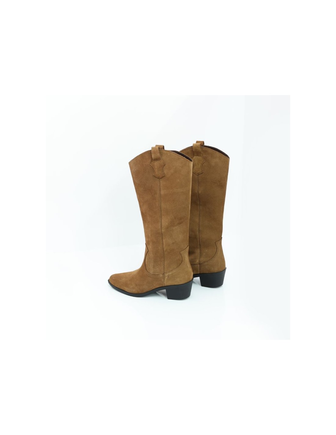Botas de mujer de ante con costura en contraste color cuero. Ref: W-TORELA-CAMEL