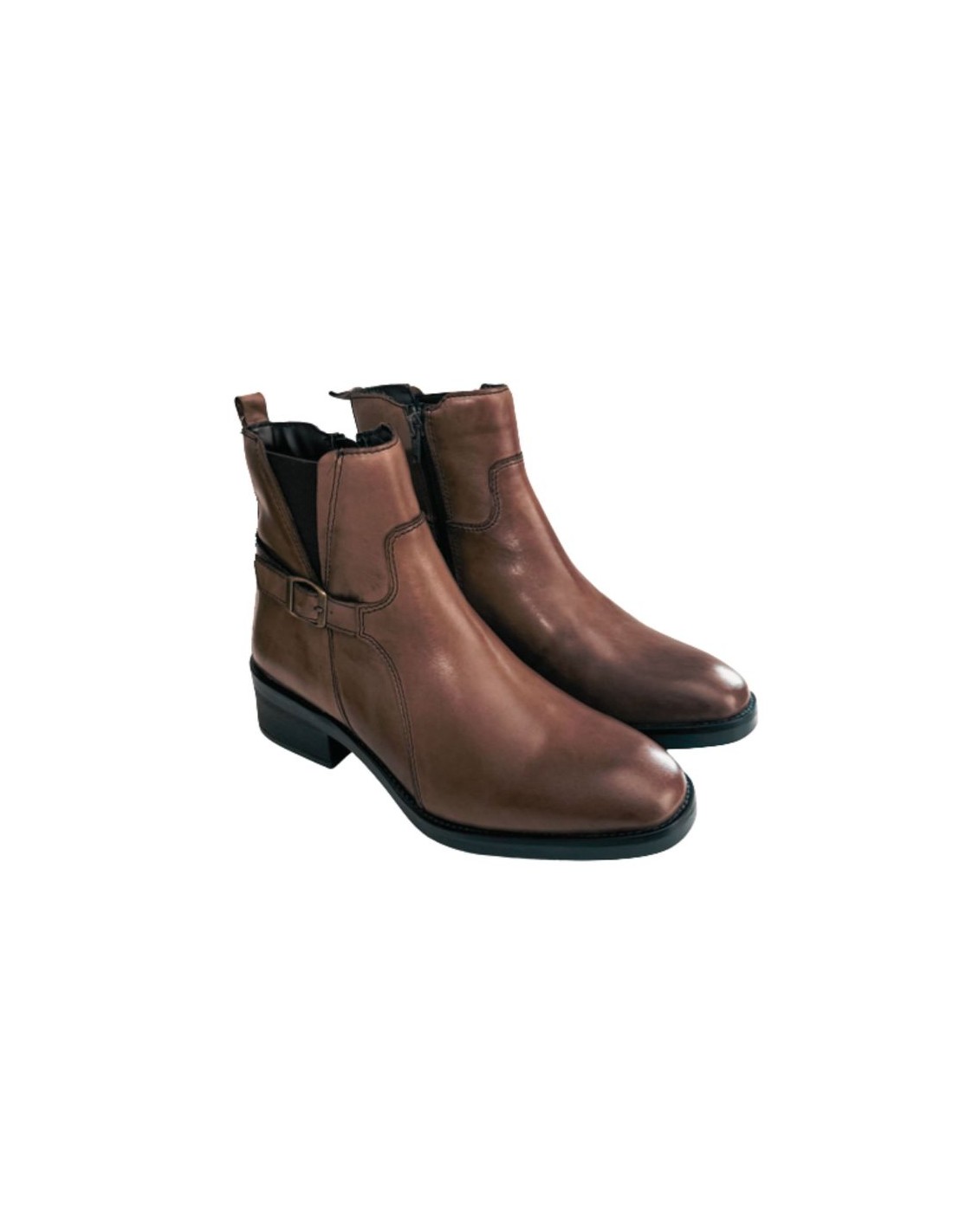 Botines de mujer de piel con hebilla color marrón. Ref: W-BELISA-BROWN