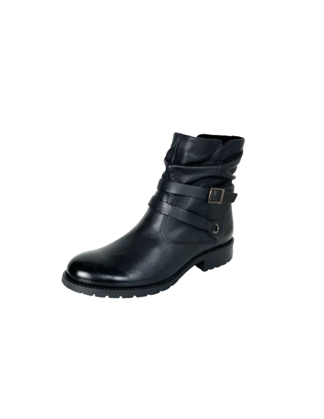 Botines de mujer de piel acabado a mano color negro. Ref: W-LATI-BLACK