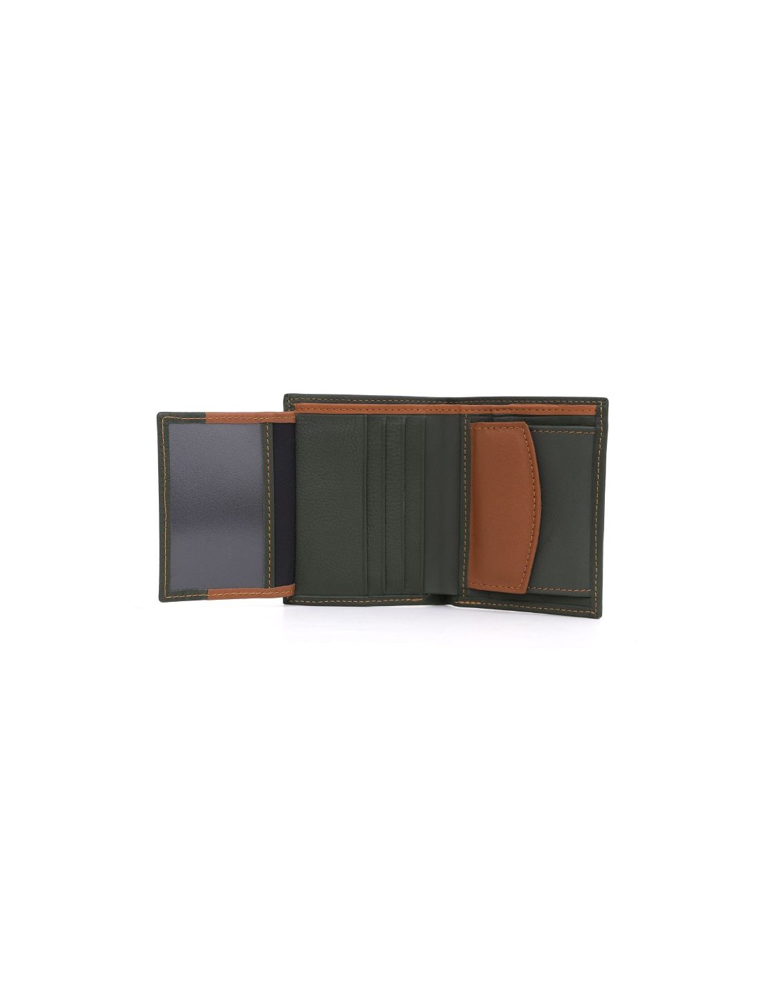 Cartera de piel con costura en contraste color verde. Ref: AC-FORZA-VERDE