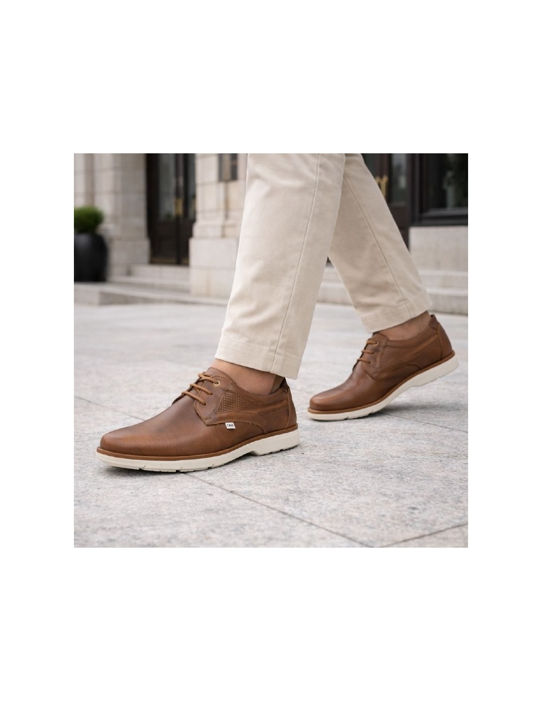 Derby de piel patrón grabado color cuero. Ref: DENIS-CUERO