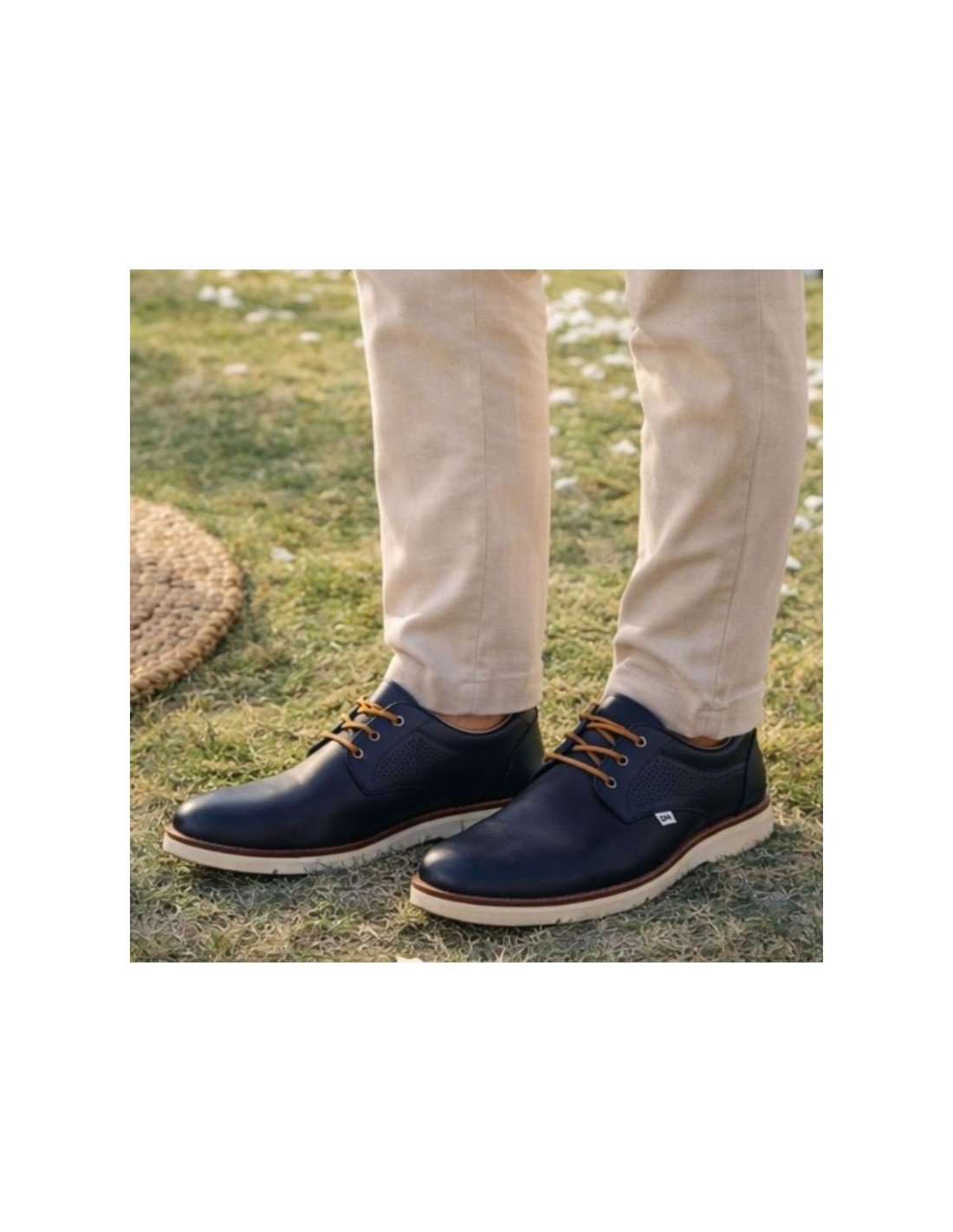 Derby de piel patrón grabado color azul. Ref: DENIS-NAVY
