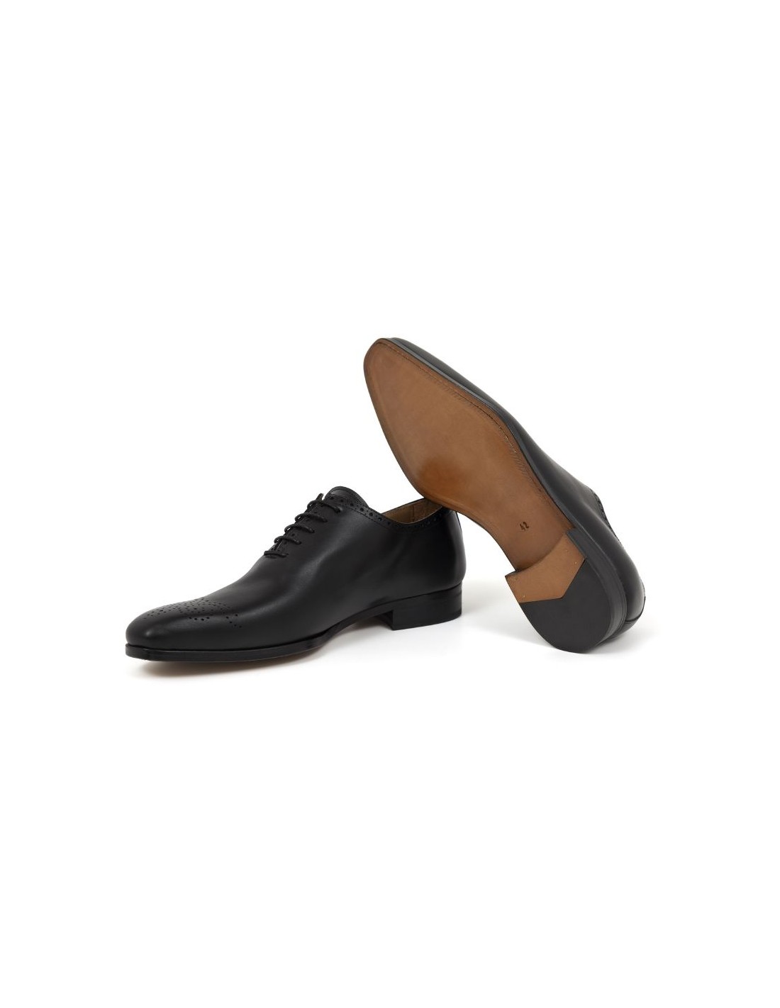 Oxford de piel brogado color negro. Ref: BLUKOR-NEGRO