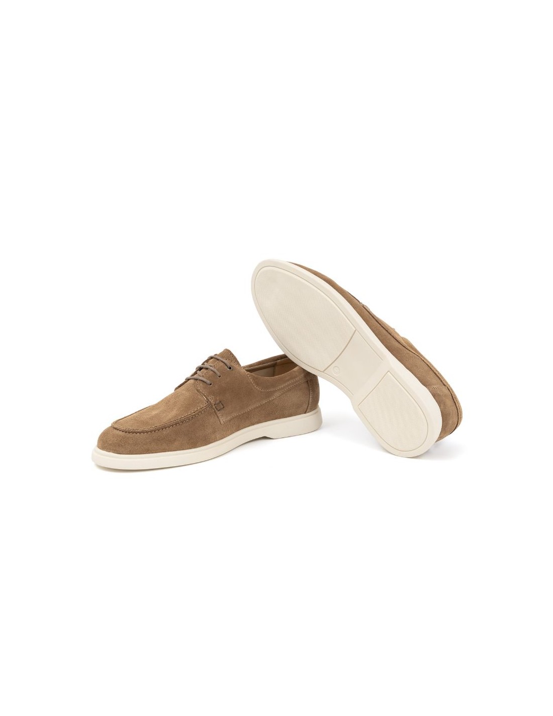 Náutico de ante con suela en contraste color cuero. Ref: MISUKA-CUERO