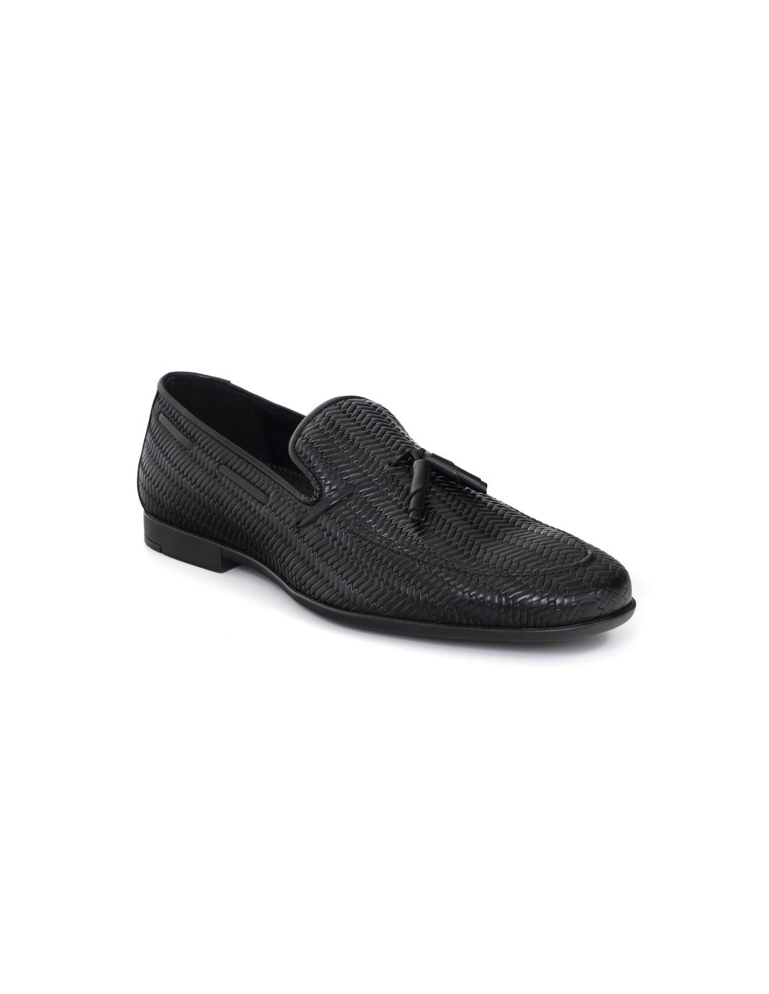 Mocasín de piel con borlas color negro. Ref: BARLON-BLACK
