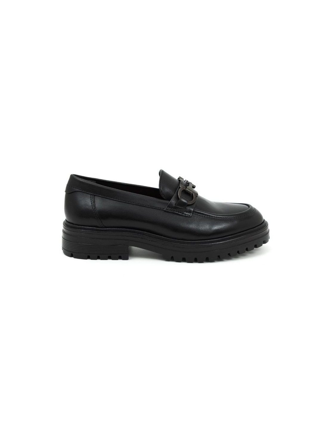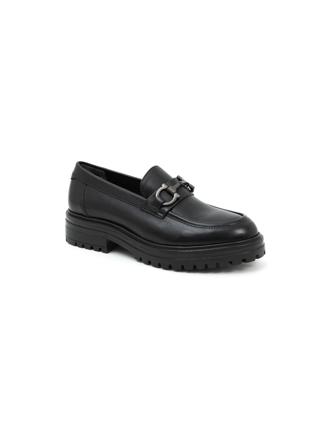 Mocasines de mujer de piel con aplique metálico color negro. Ref: W-CRISIA-BLACK
