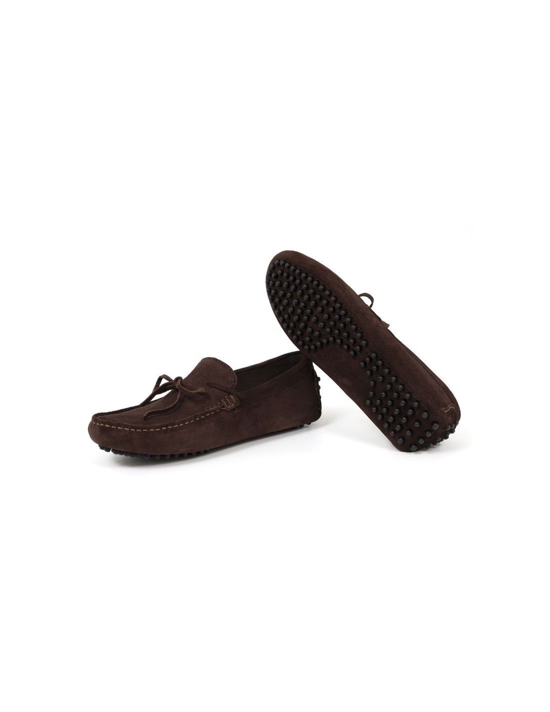 Mocasín de ante con lazo color marrón. Ref: ITONA-BROWN