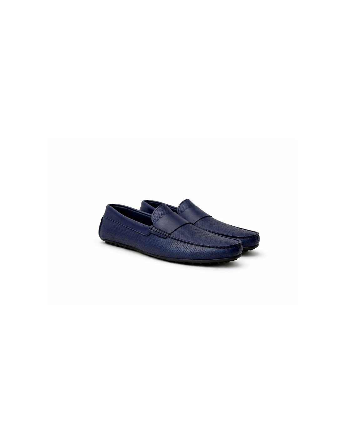 Mocasín de piel con antifaz color azul. Ref: MOCBASKET-MARINO