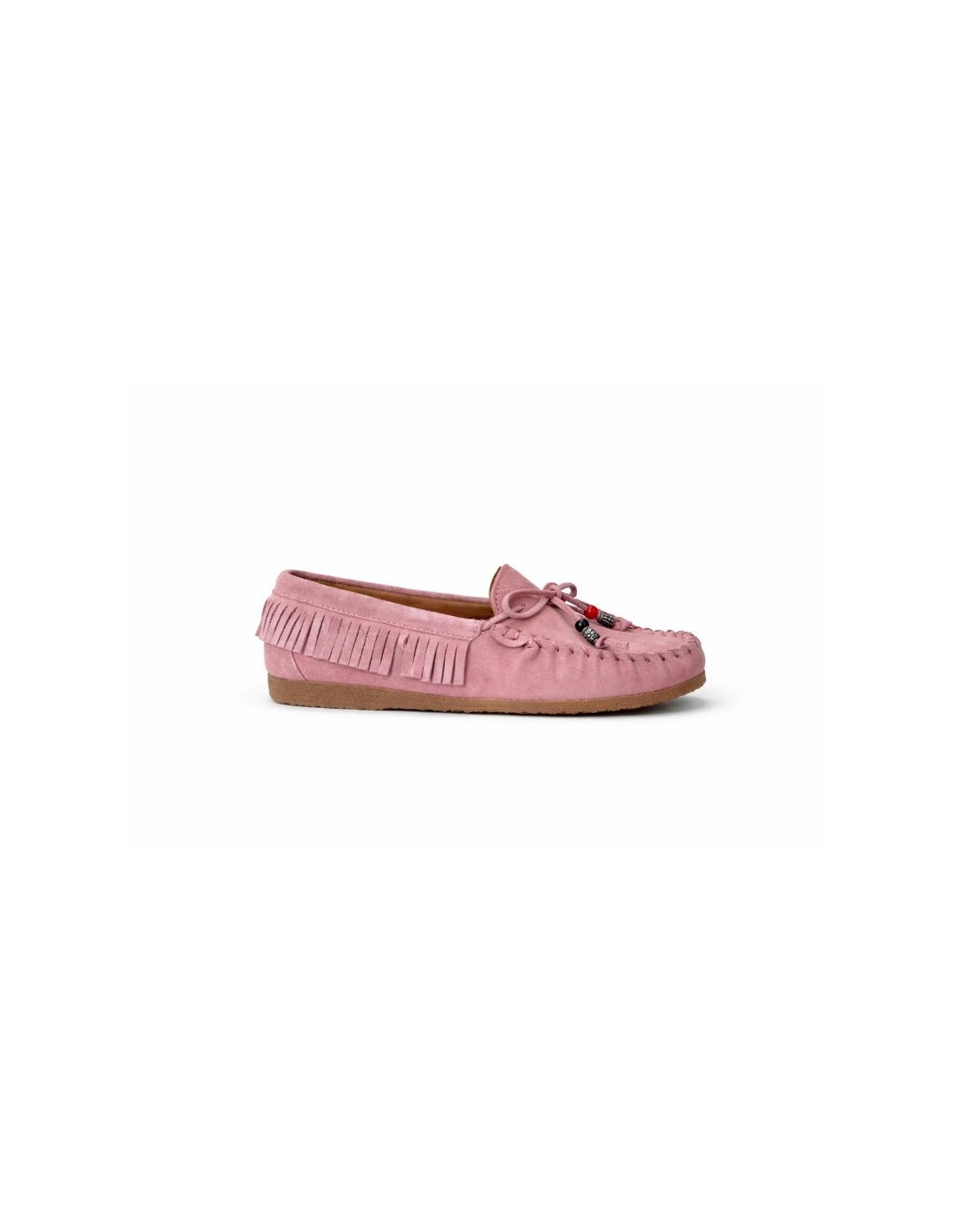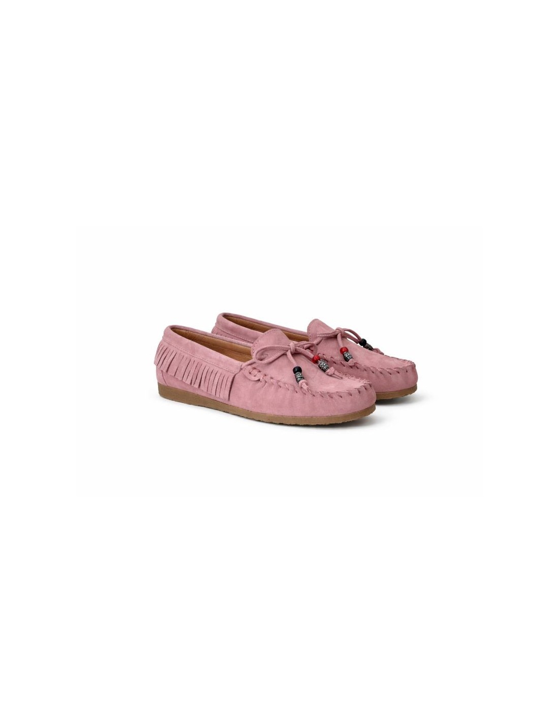 Mocasines de mujer de ante con remaches color rosa. Ref: W-MOFLEK-PINK