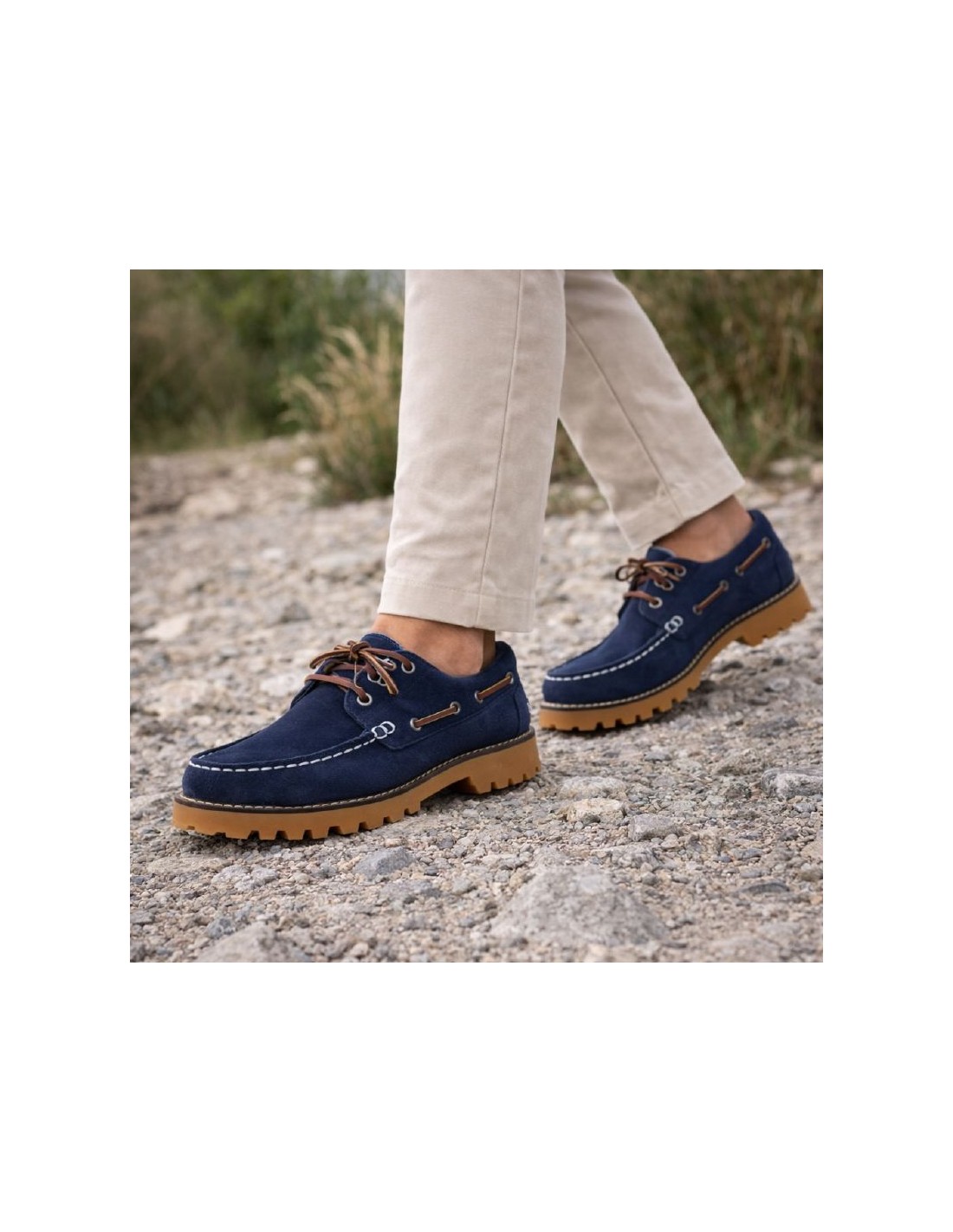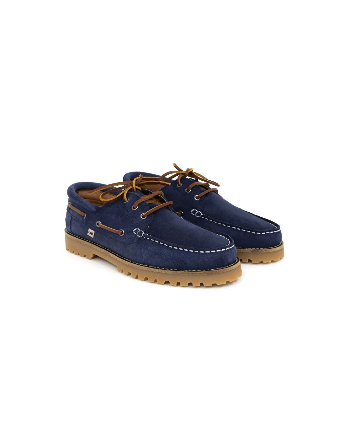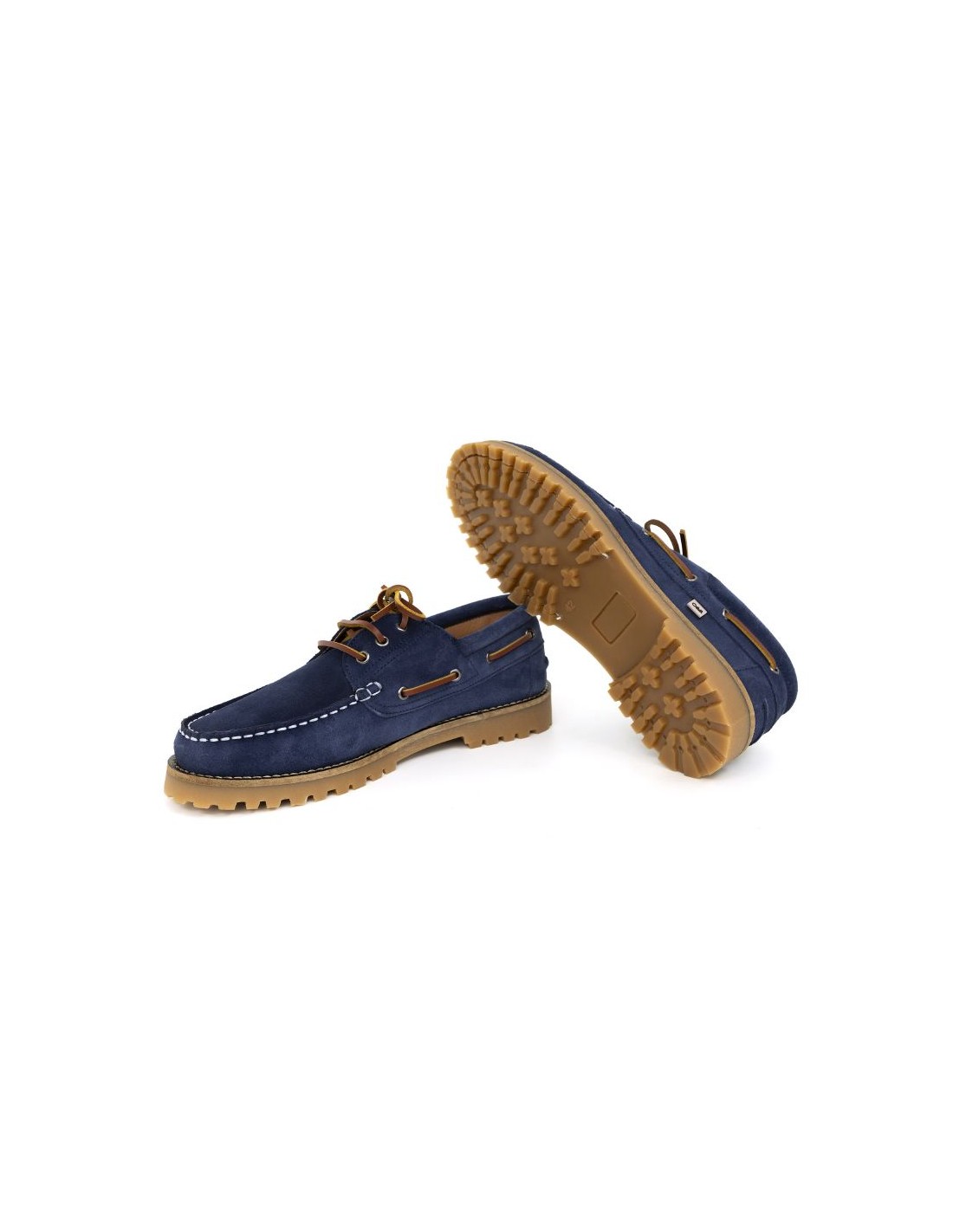 Náutico de ante con cordón de piel color azul. Ref: SUNI-JEANS
