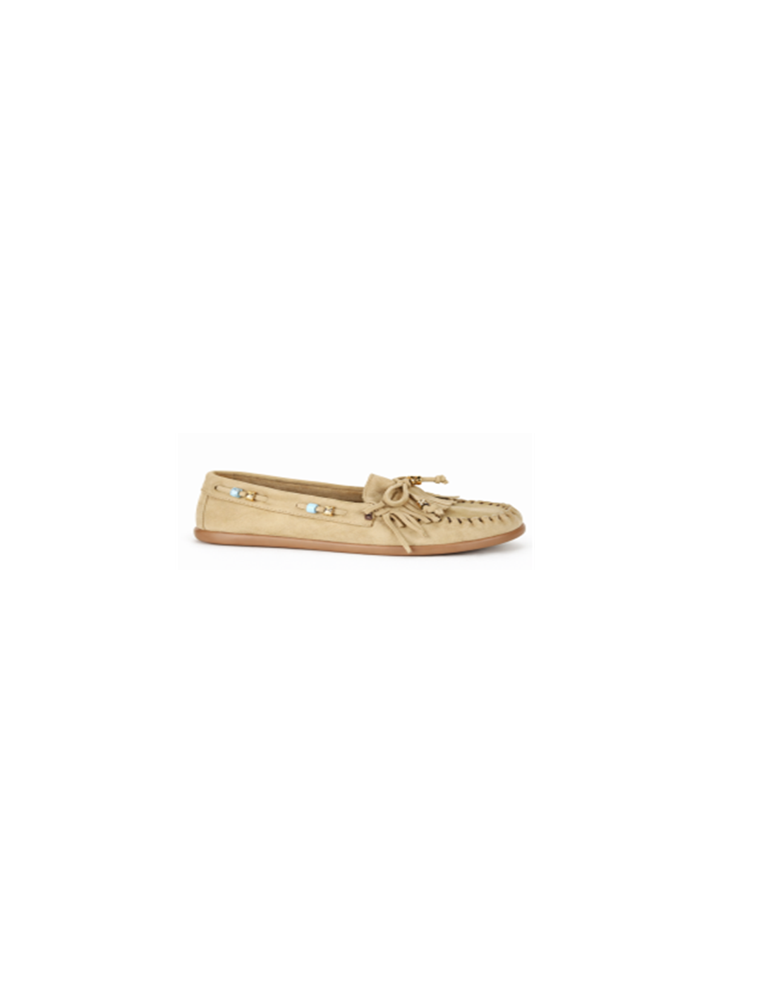 Mocasines de mujer de ante con flecos color beige. Ref: W-SAPIK-BEIGE