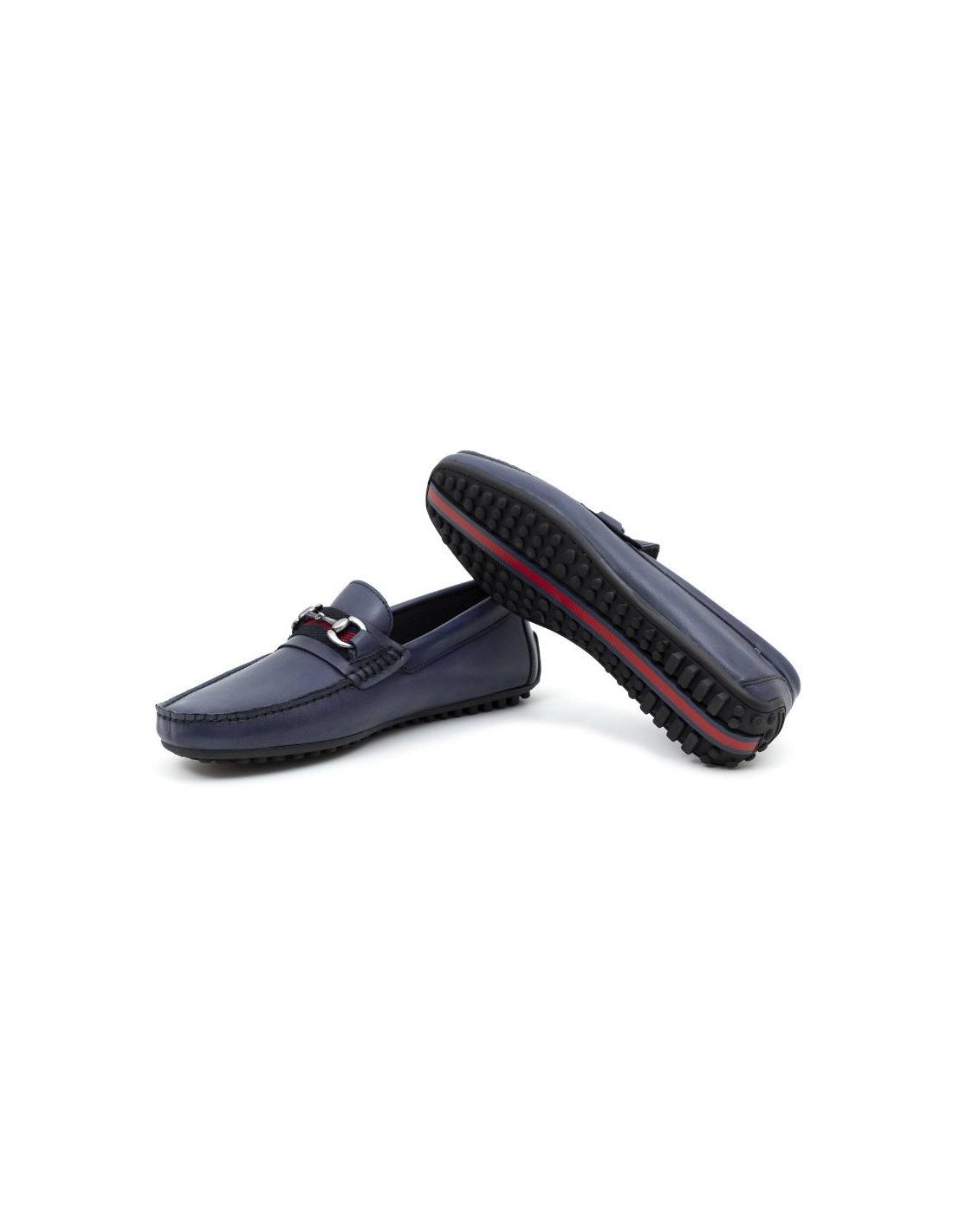 Mocasín de piel con hebilla color azul. Ref: BELIPO-NAVY