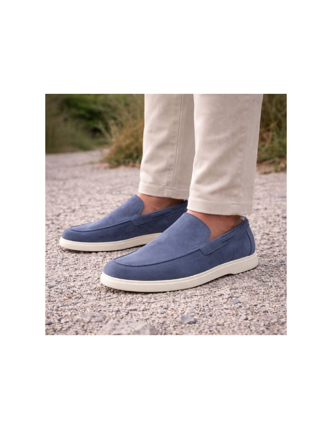 Mocasín de ante liso color azul. Ref: MILSAN-BLUE