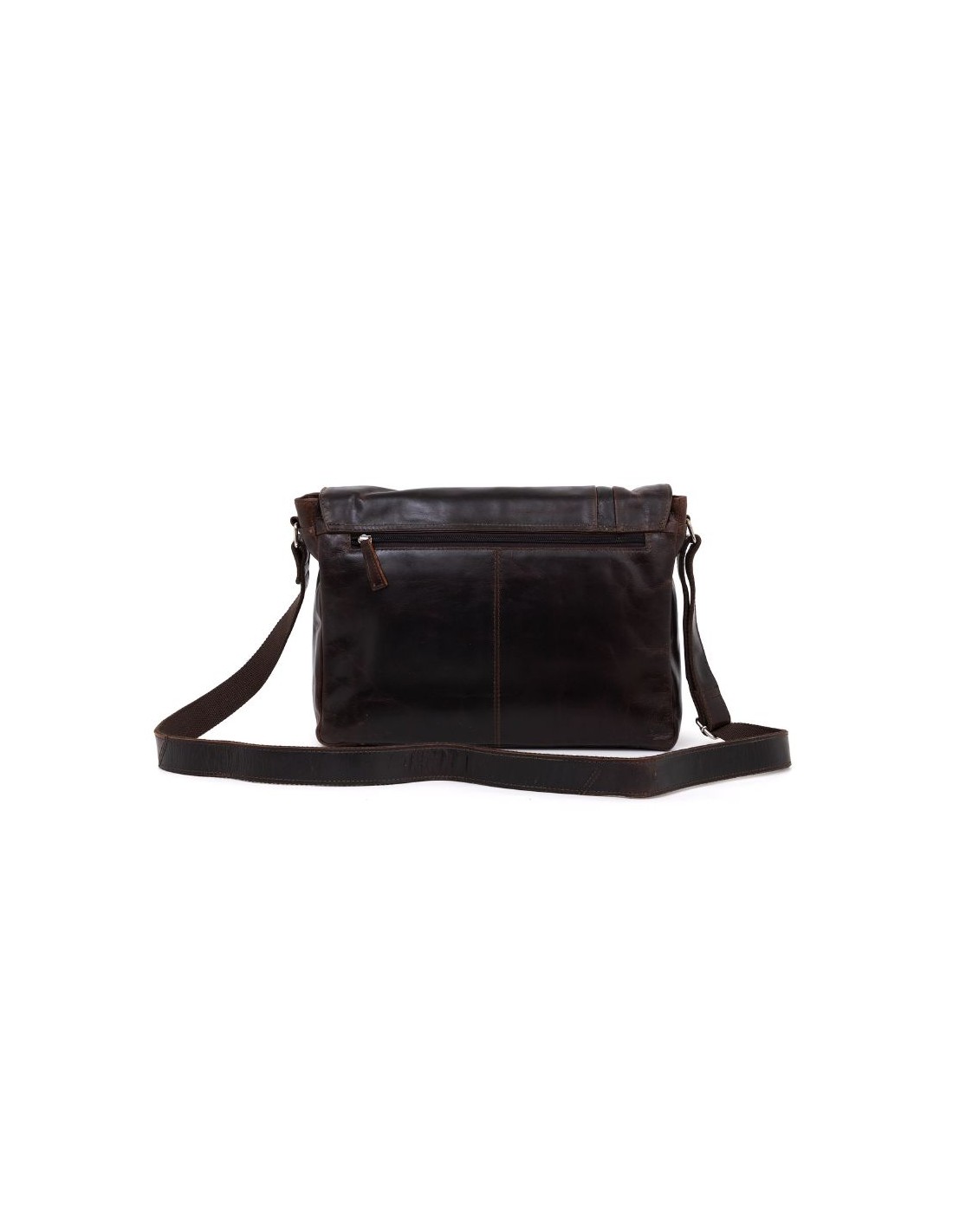 Bolso de piel cosido artesano color marrón. Ref: AC-LAPCASE-134-BROWN