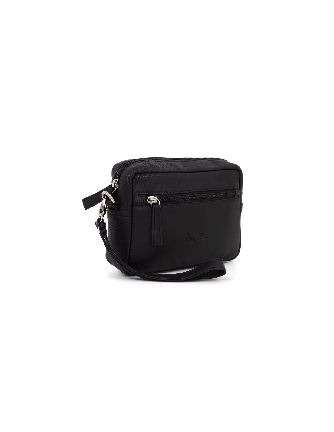 Bolso de piel cosido artesano color negro. Ref: AC-BOMAN-5312-BLACK