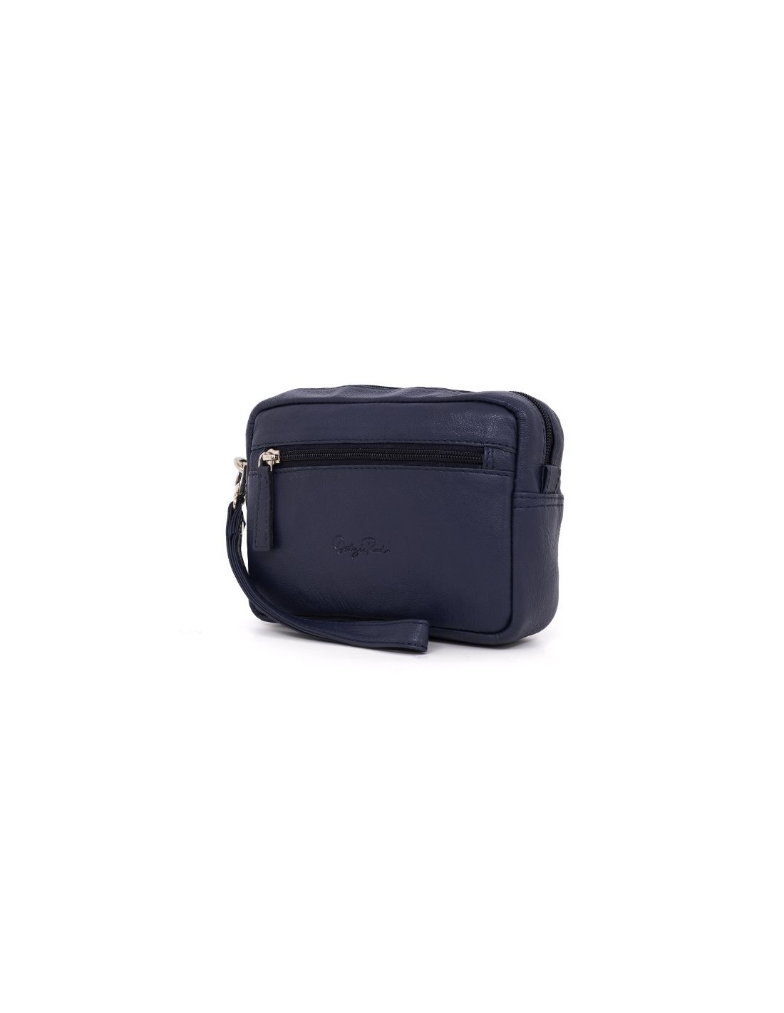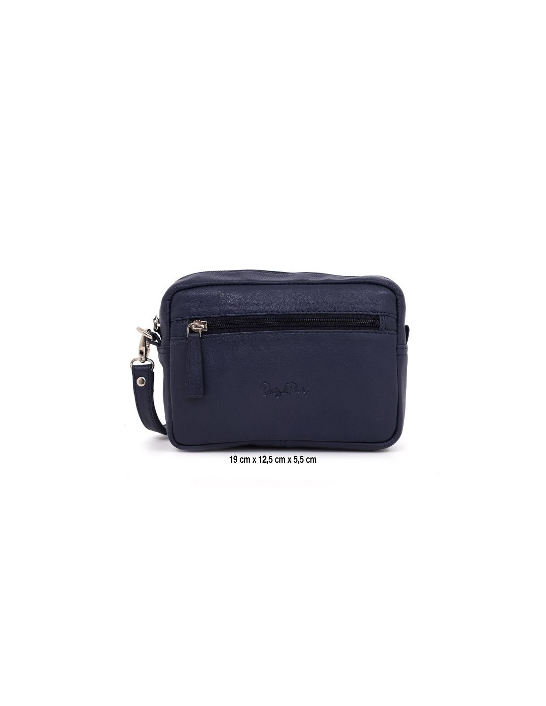 Bolso de piel cosido artesano color azul. Ref: AC-BOMAN-5312-BLUE