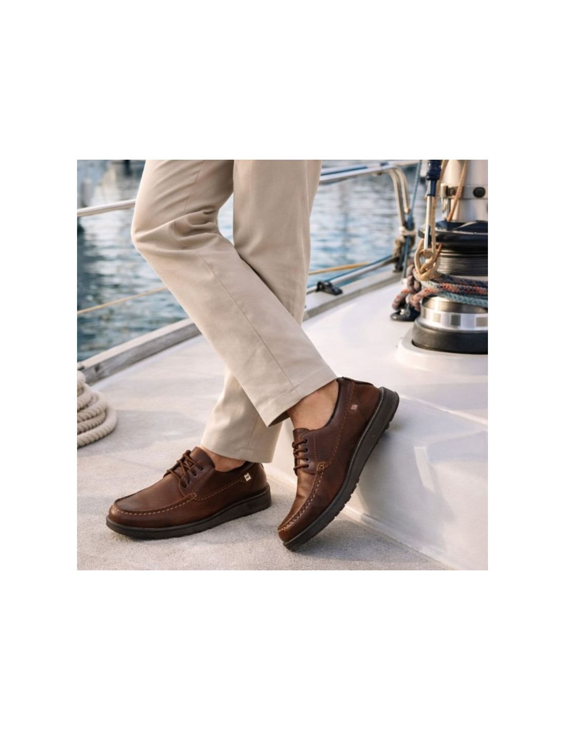 Náutico de piel de suela en contraste color marrón. Ref: NOLAT-MARRON