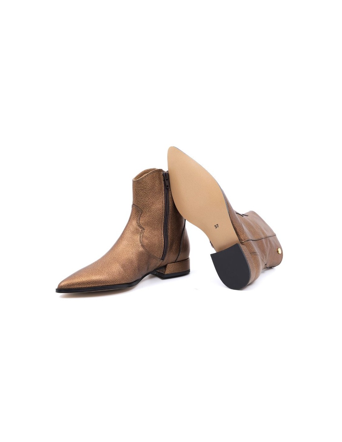 Botines de mujer liso con cremallera color oro. Ref: W-EIRA-BRONCE