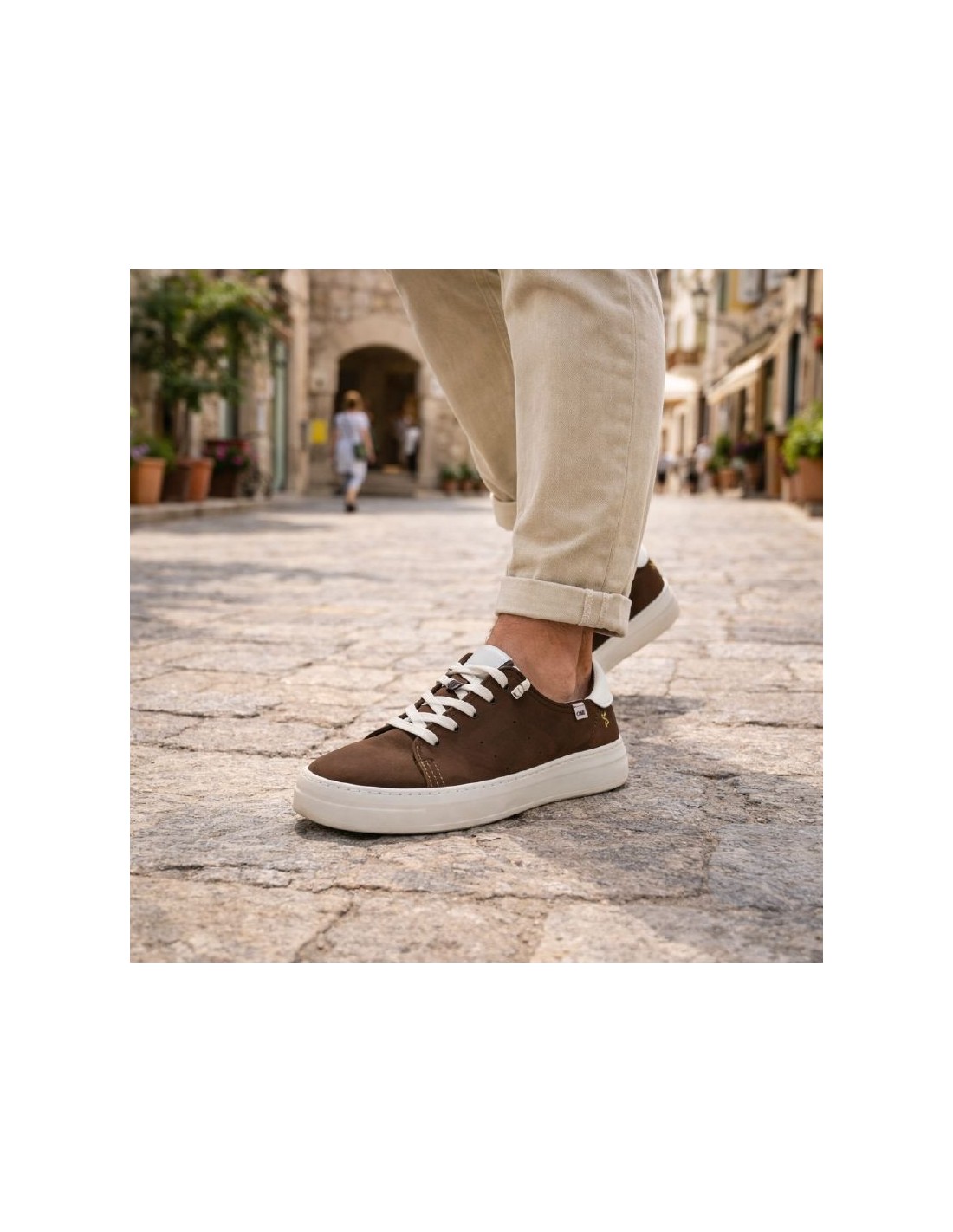Sneakers de nobuck liso color marrón. Ref: NUCATI-BROWN