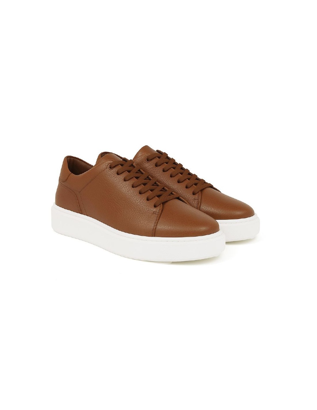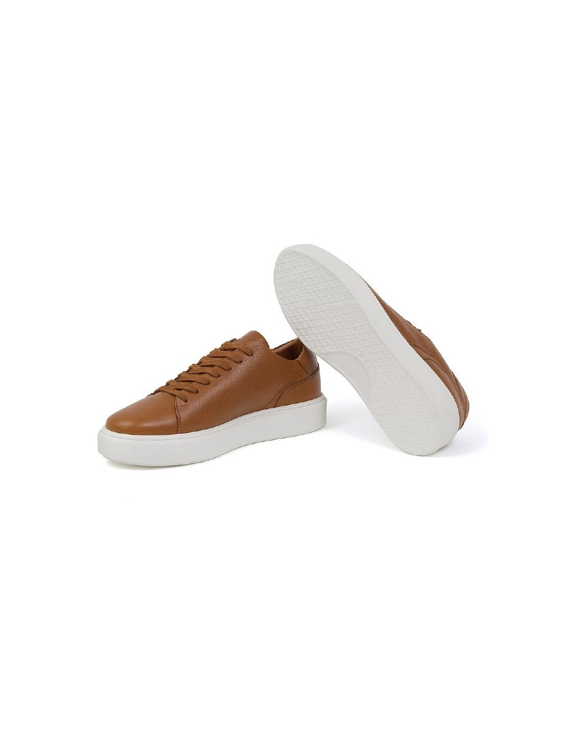 Sneakers de piel liso color cuero. Ref: MELIN-CUERO