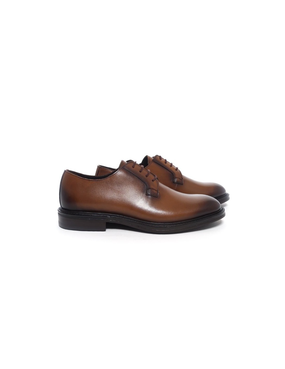Derby de piel de costura vuelta color cuero. Ref: KIRONA-CUERO