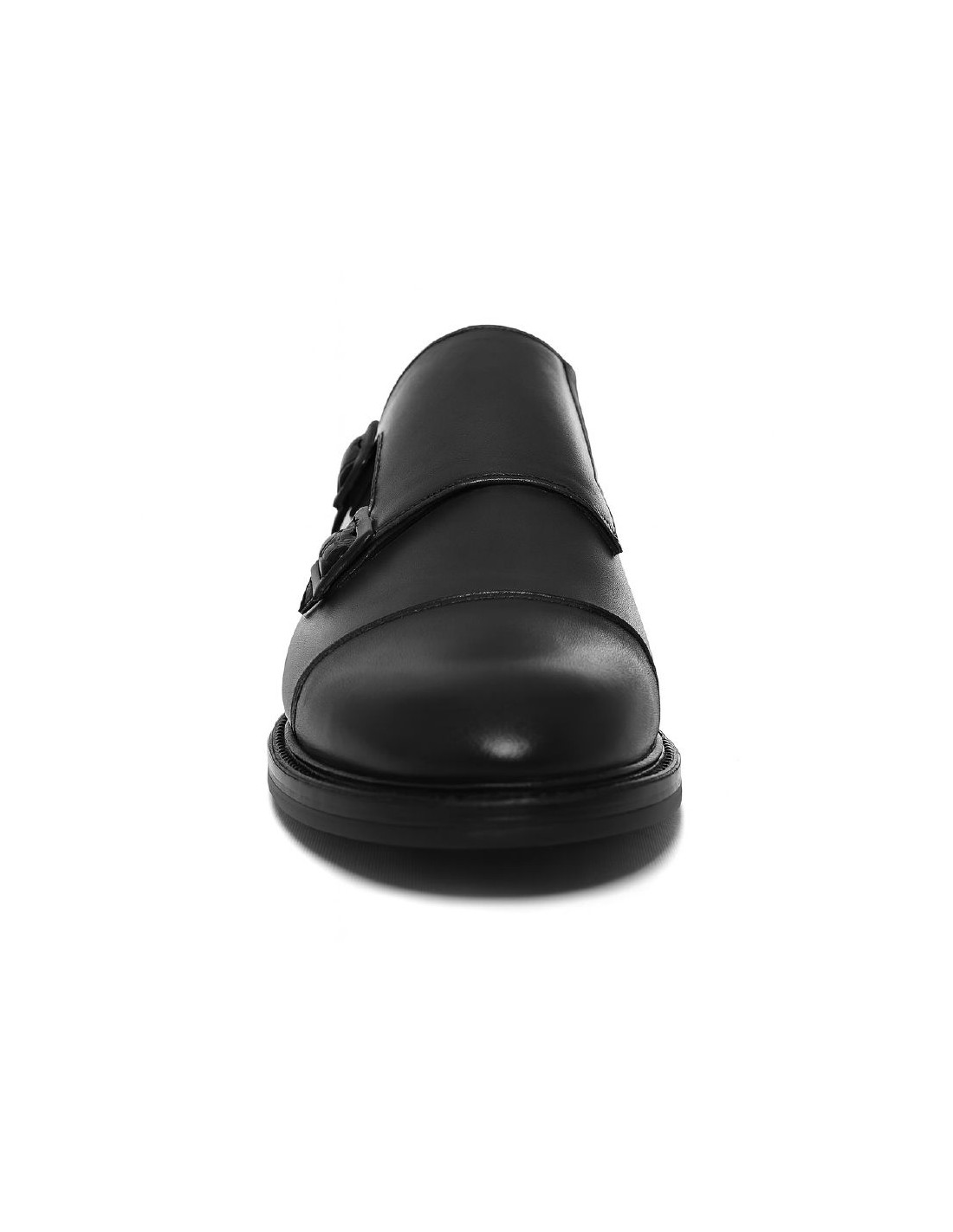Zapato con hebilla de piel acabado a mano color negro. Ref: OSVAN-NEGRO